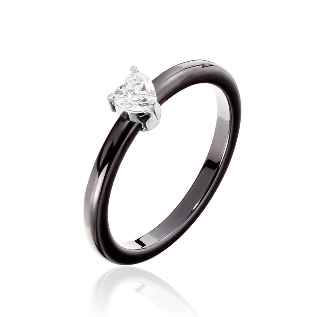Bague Argent 925/1000 Céramique Noire Et Oxydes De Zirconium