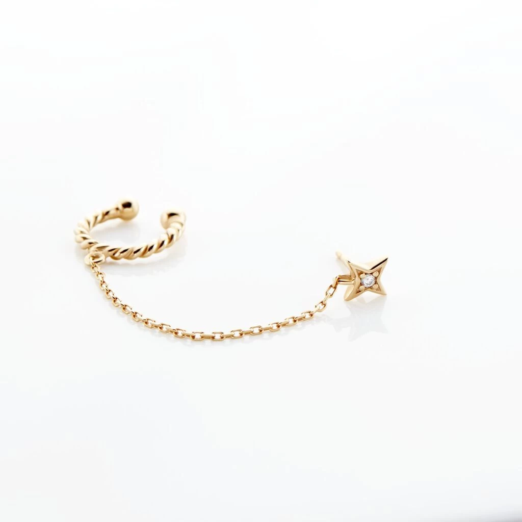 Bijou D’oreille Unitaire Plaque Or Jaune Etoile Oxyde De Zirconium Et Bague D’oreille Ajustable Maille Forcat 4cm