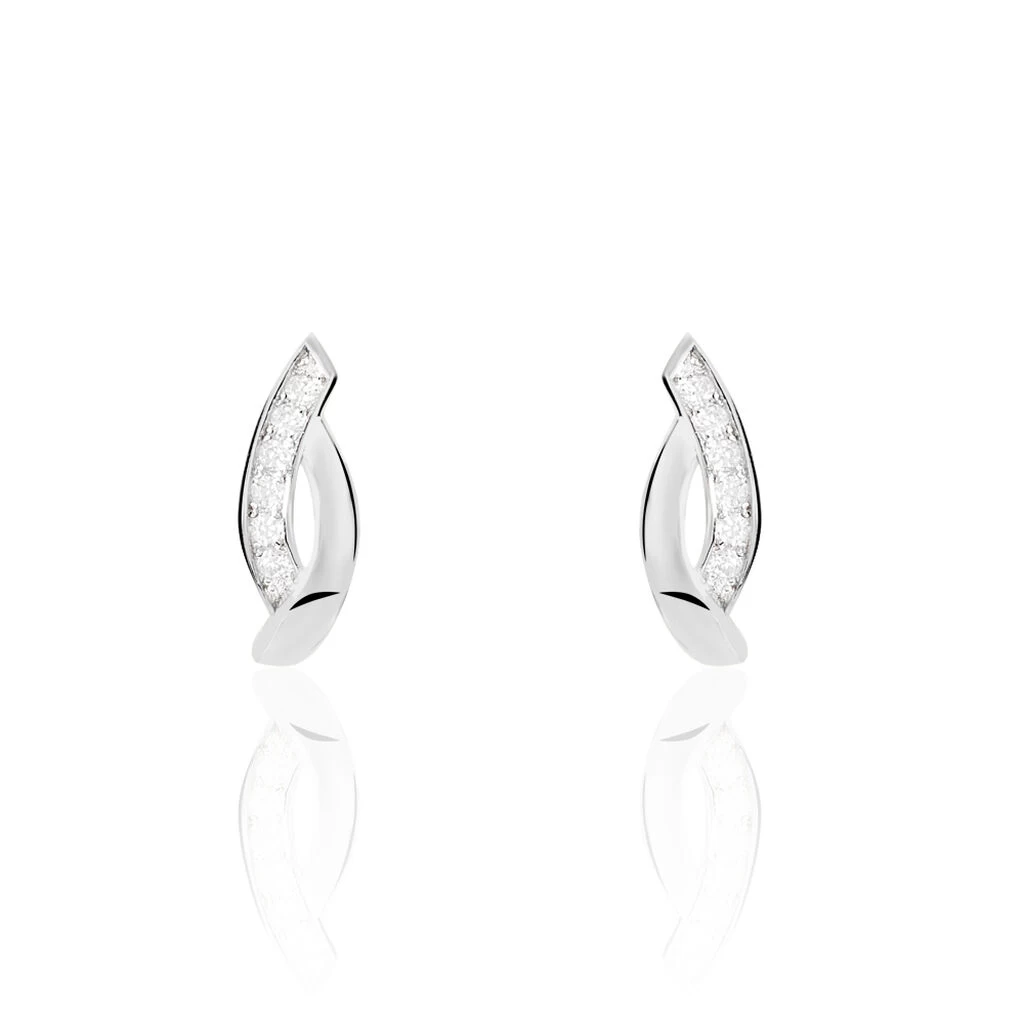 Boucles D’oreilles Argent Blanc 925/1000 Amandes Ajourees Semi Pavee Oxydes De Zirconium