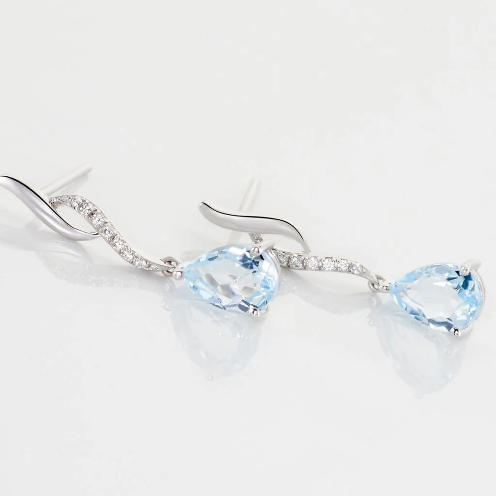 Boucles D’oreilles Pendantes Or Blanc 375/1000 Topazes Formes Poires Et Oxydes De Zirconium