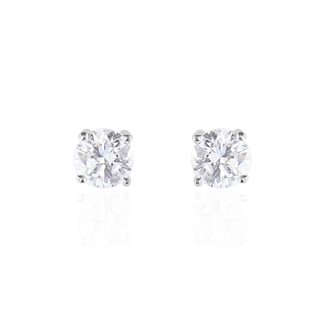 Boucles D’oreilles Puces Or Blanc 750/1000 Diamants Synthétiques 0.60ct Serti 4 Griffes Systèmes Alpas