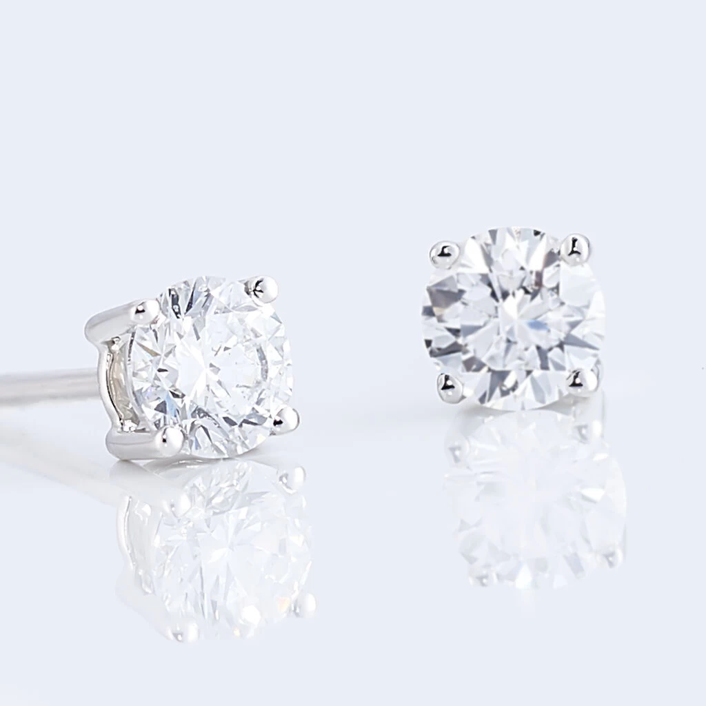 Boucles D’oreilles Puces 4 Griffes Or Blanc Diamant Synthetique