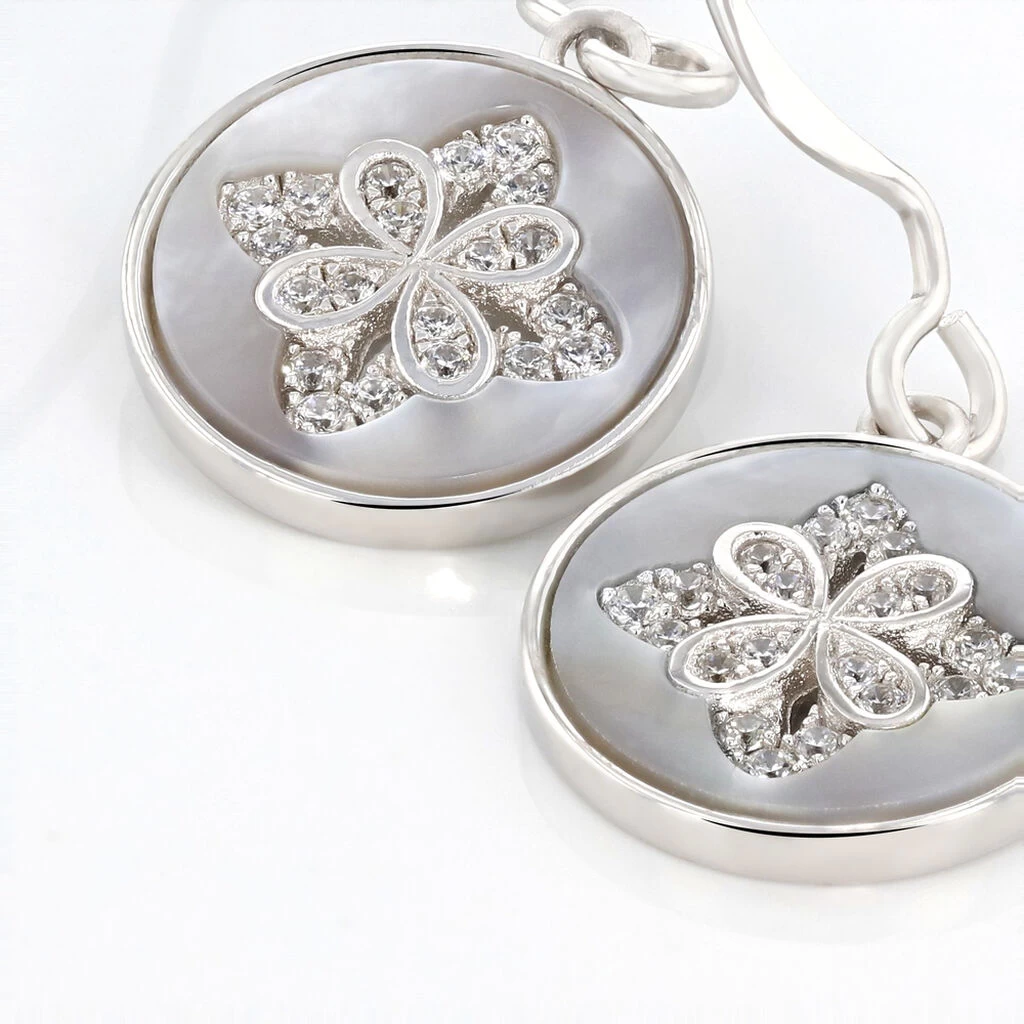 Boucles D’oreilles Argent 925/1000 Nacre Grise Etoile Oxyde