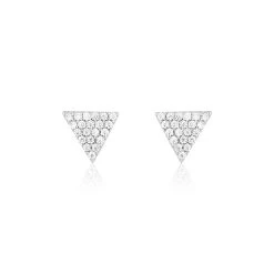 Boucles D’oreilles Argent Blanc 925/1000 Triangles Pavages Oxydes De Zirconium