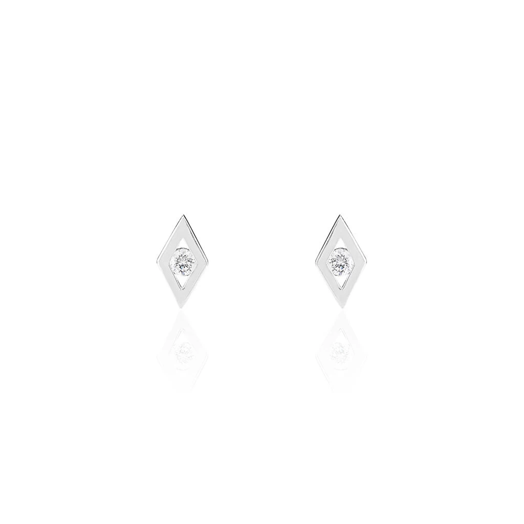 Boucles D’oreilles Or Blanc 375/1000 Puces Motifs Losanges Diamants Centraux 0.066ct