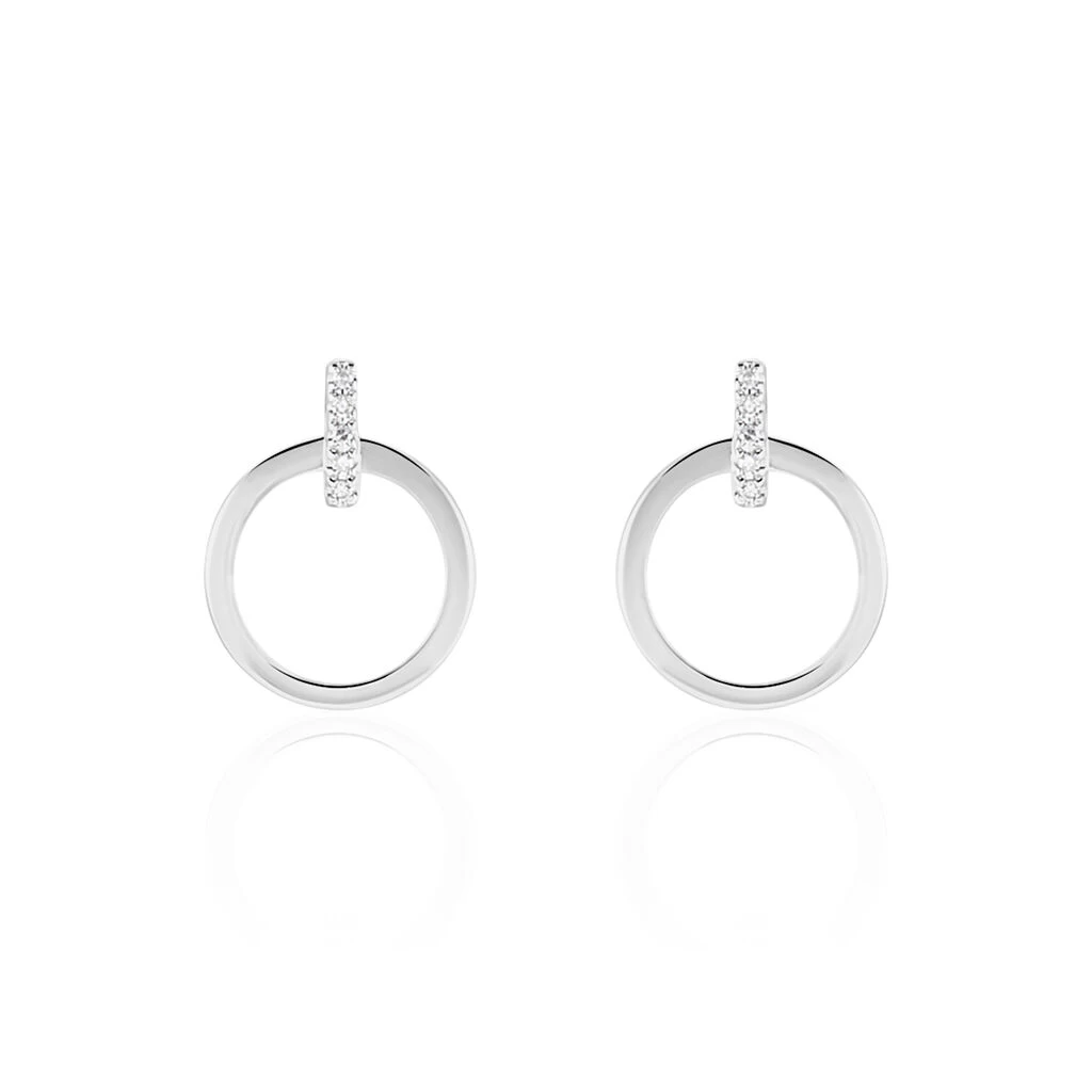 Boucles D’oreilles Or Blanc 375/1000 Forme Cercle Et Barrette Pavage Diamants