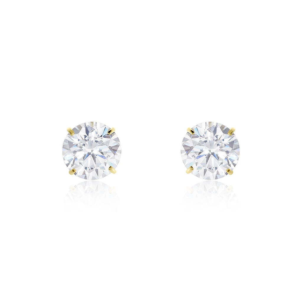 Boucles D’oreilles Puces Or Jaune 375/1000 Oxyde De Zirconium Serti 4 Griffes 6mm