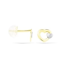 Boucles D’oreilles Puces Anne-maudae Double Coeurs Or Bicolore