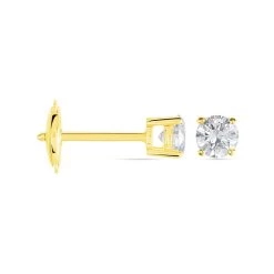 Boucles D’oreilles Puces 4 Griffes Or Jaune Diamant Synthetique