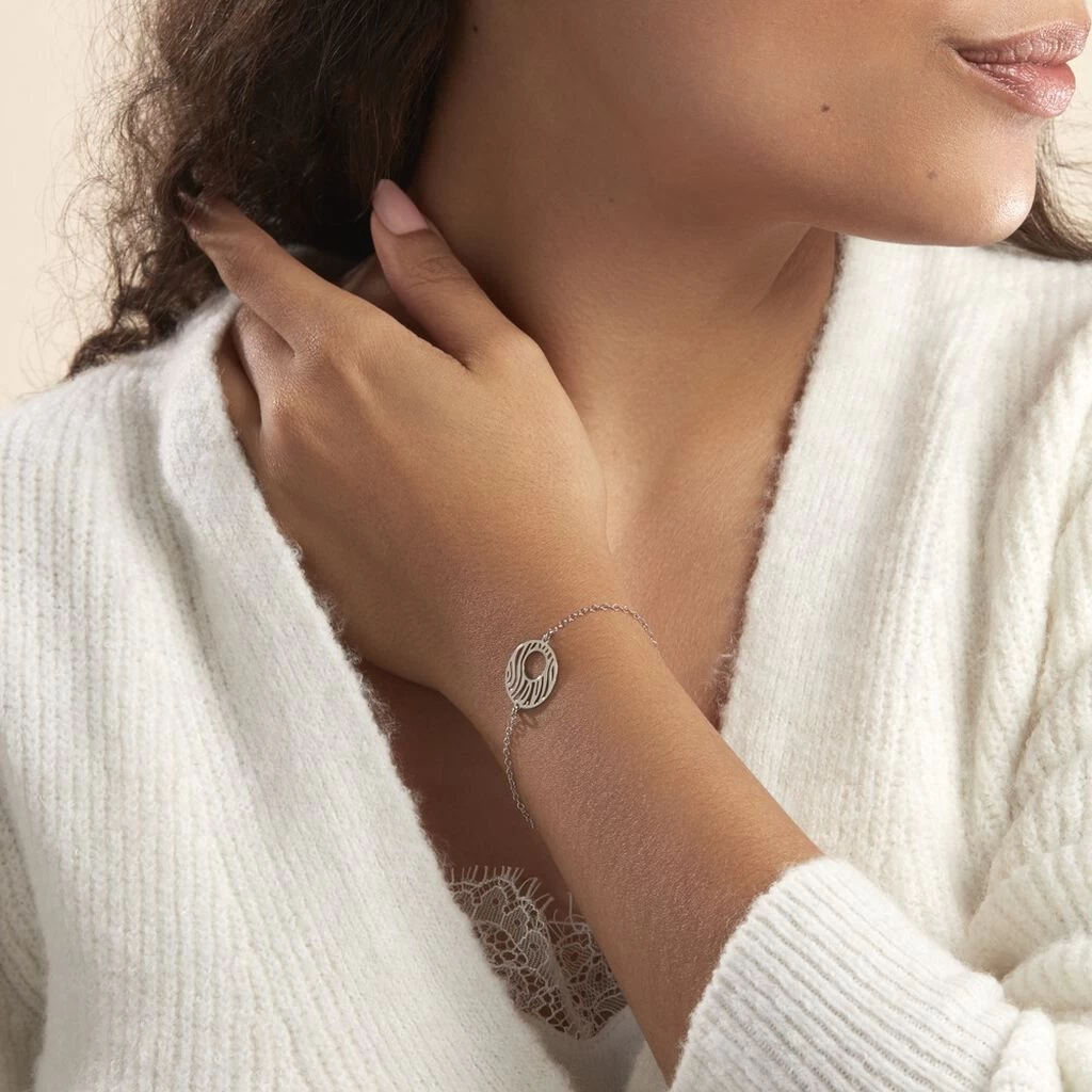 Bracelet Argent Blanc 925/1000 Cercle Motifs Zebres Maille Forcat 19cm