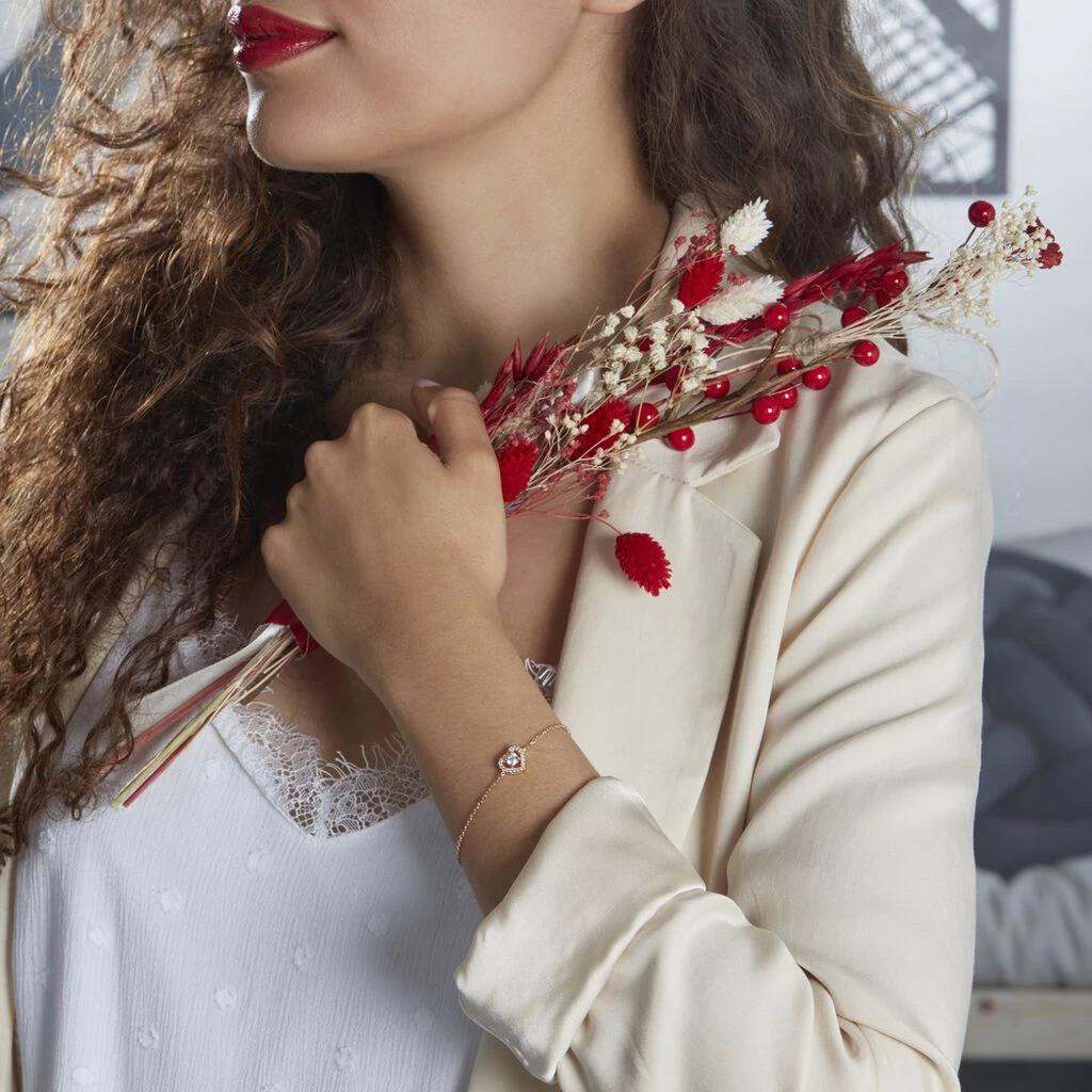 Bracelet Plaqué Or Jaune Cœur Entourage Oxydes De Zirconium 18cm