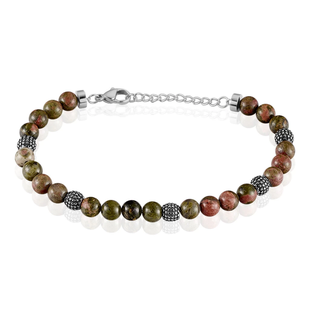Bracelet Acier Boules Pierres Unakites 22cm