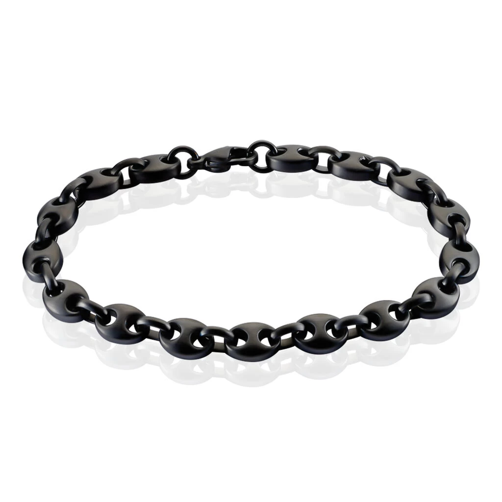 Bracelet Acier Noir Fonce Antique Maille Grain De Cafe 7mm 21cm