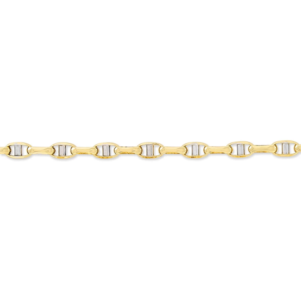 Bracelet Or Bicolore 375/1000 Maille Marine Ronde 3mm 21cm