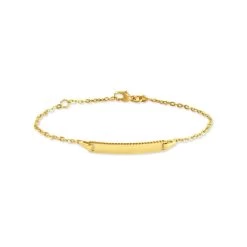 Bracelet Identité Bebe Or Jaune 375/1000 Plaque Rectangle Ciselée Maille Forçat Claire 19cm