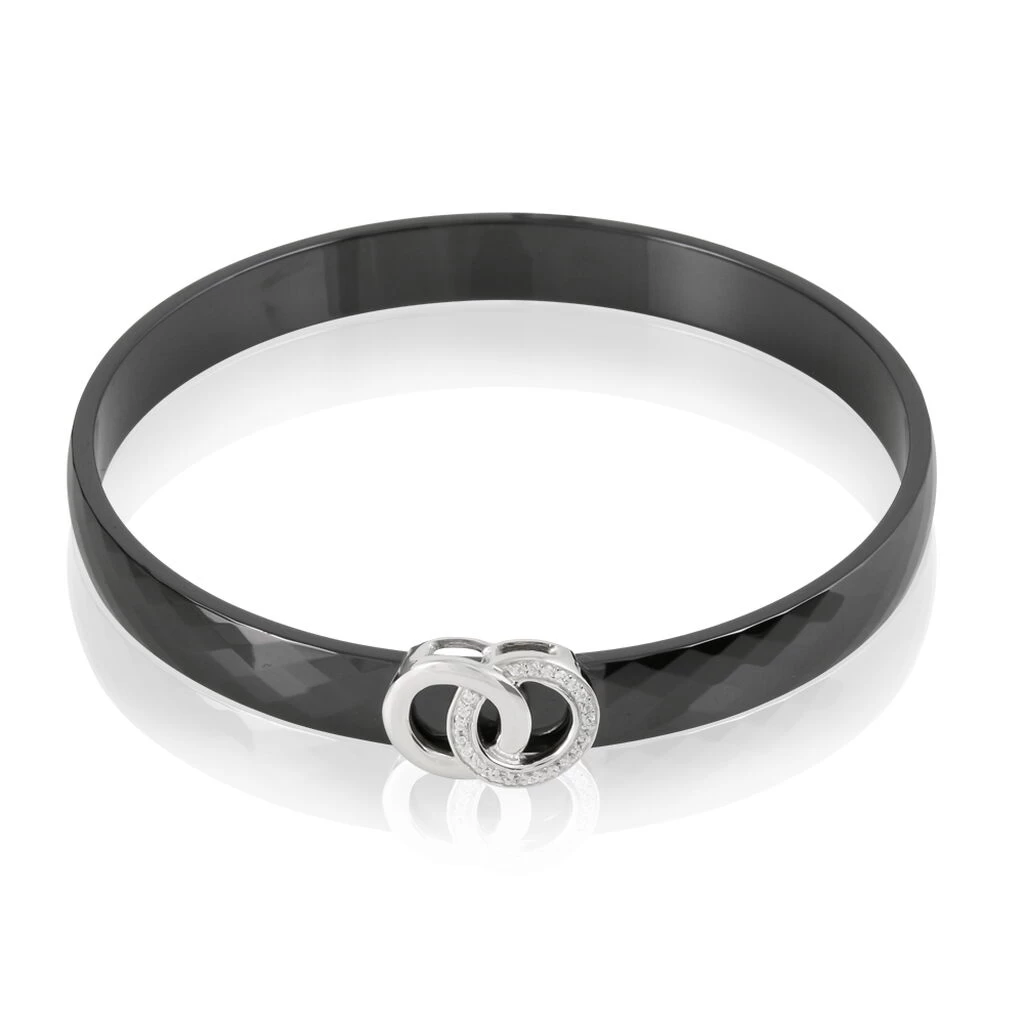 Bracelet Jonc Argent Blanc Oxyde De Zirconium Et Céramique