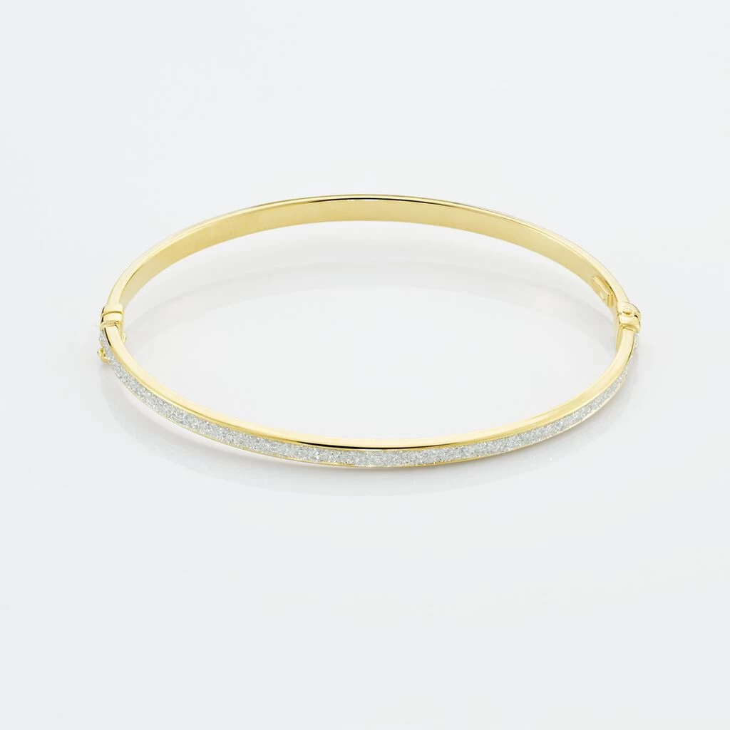 Bracelet Jonc Or Jaune 375/1000 Fil Plat 3.5mm Glitter Silver Diamètre 60mm