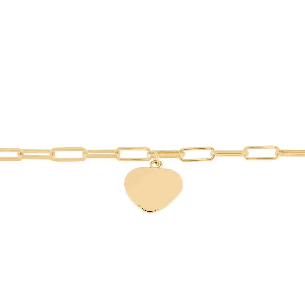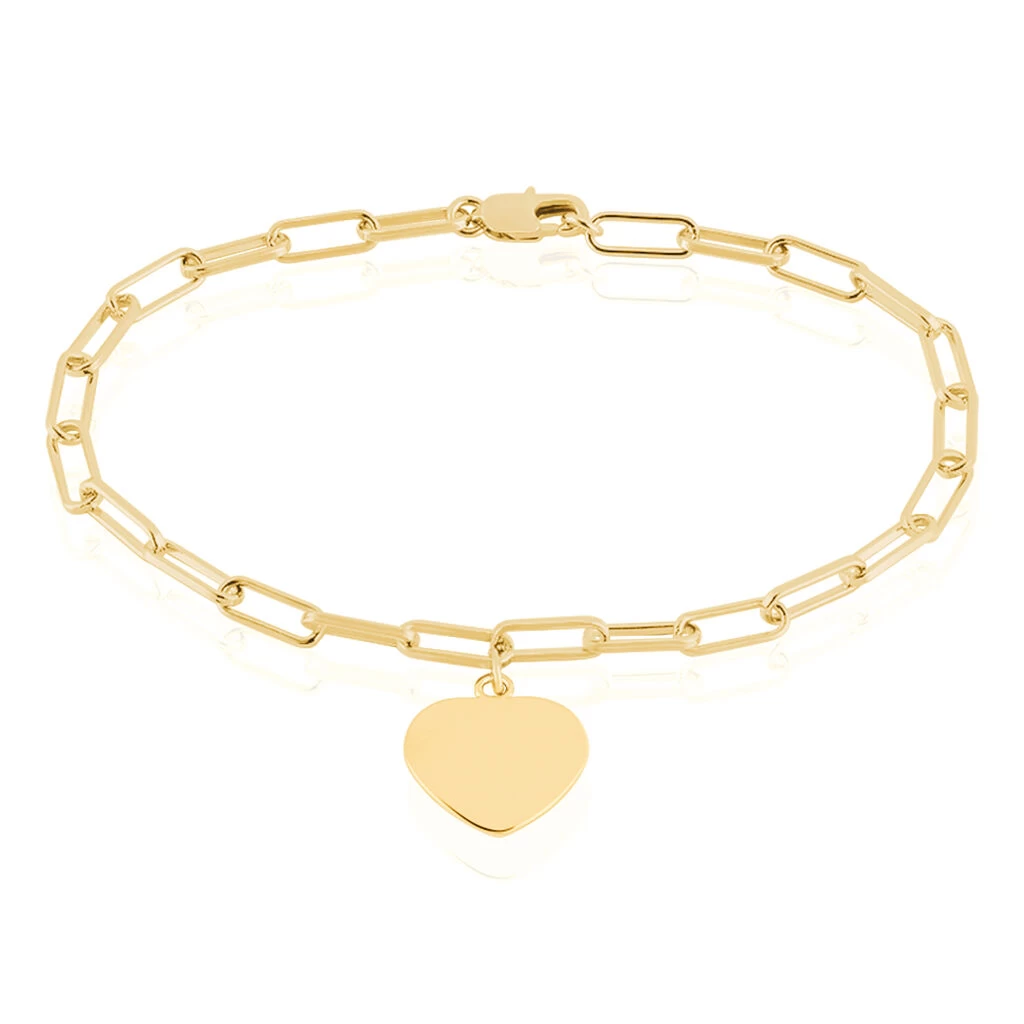 Bracelet Plaqué Or Jaune Pampille Coeur Maille Cheval 3.5mm 21cm