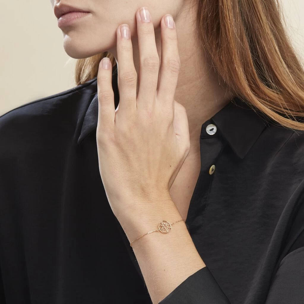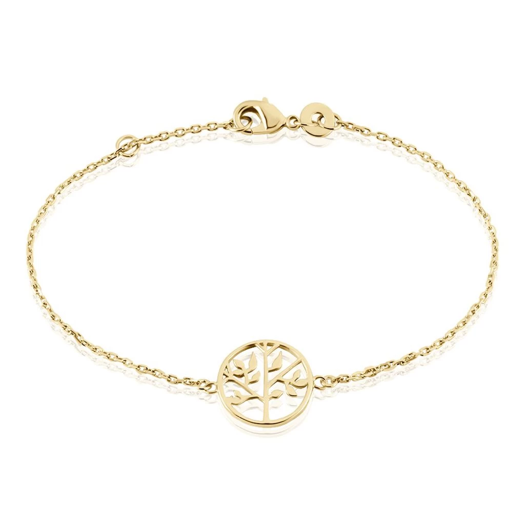 Bracelet Plaque Or Jaune Arbre De Vie Chaine Forcat 18cm