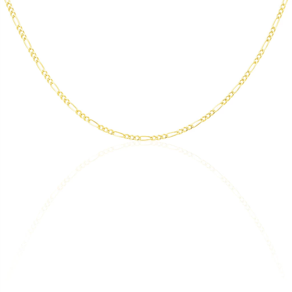 Cette chaîne en or jaune ajoutera une touche de raffinement à votre tenue. Elle est réalisée avec une maille alternée 1/3 et des maillons larges qui lui confèrent un aspect très moderne. Casual, chic, ou classique… ce modèle convient à tous les looks. Il existe avec des longueurs différentes.