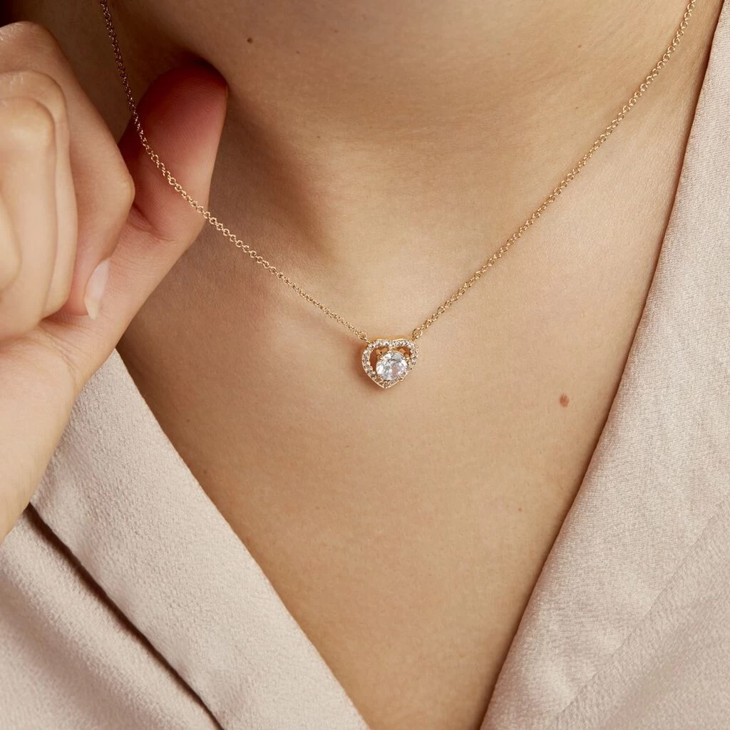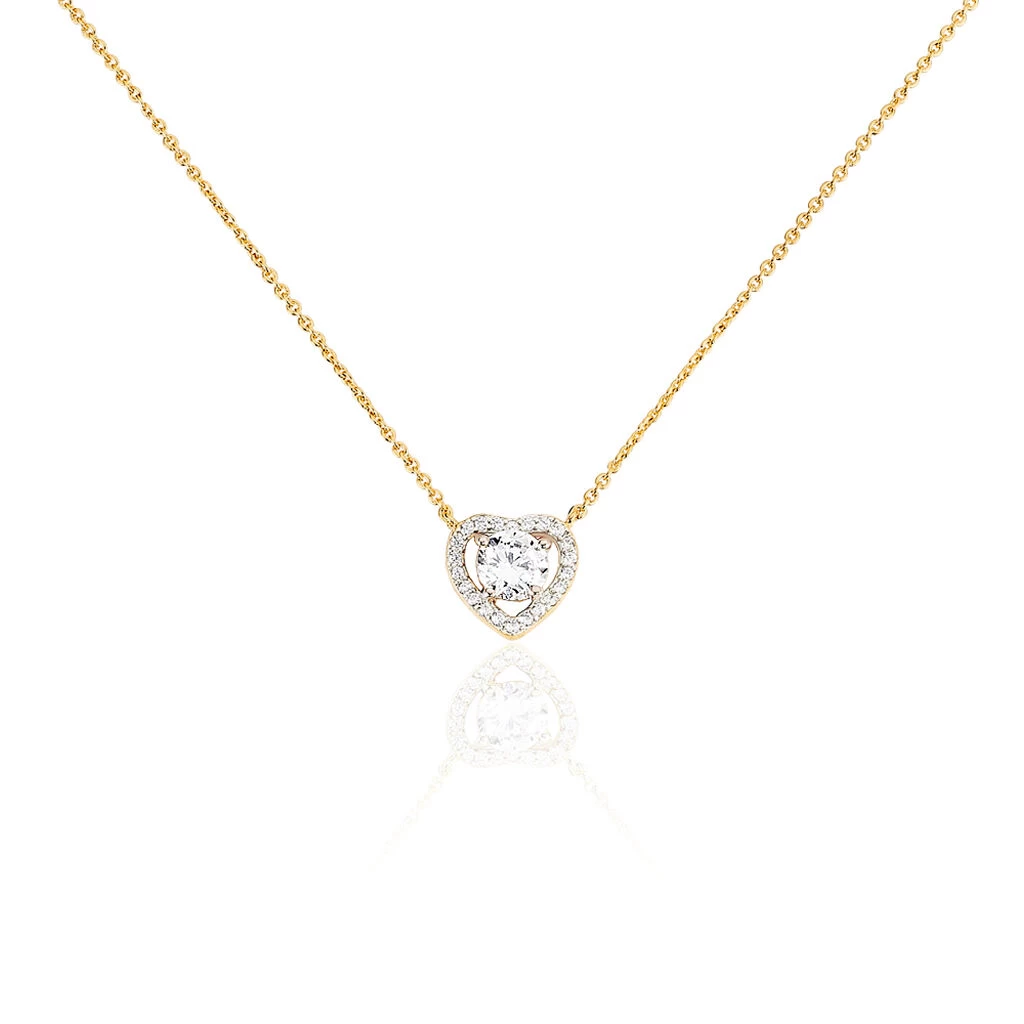 Collier Plaqué Or Jaune Cœur Entourage Oxydes De Zirconium 44cm
