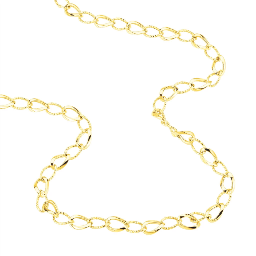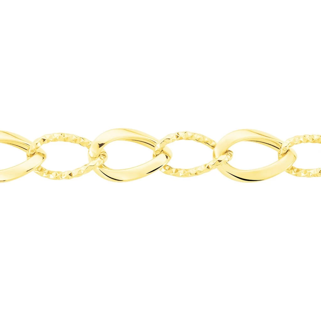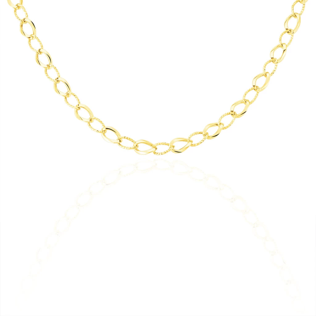 Collier Or Jaune 375/1000 Maille Alternée Lisse Et Godronnée 55cm