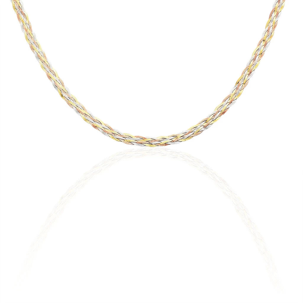 Collier Or Tricolore 375/1000 Tresse 6 Fils 5mm 42cm