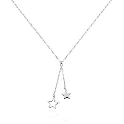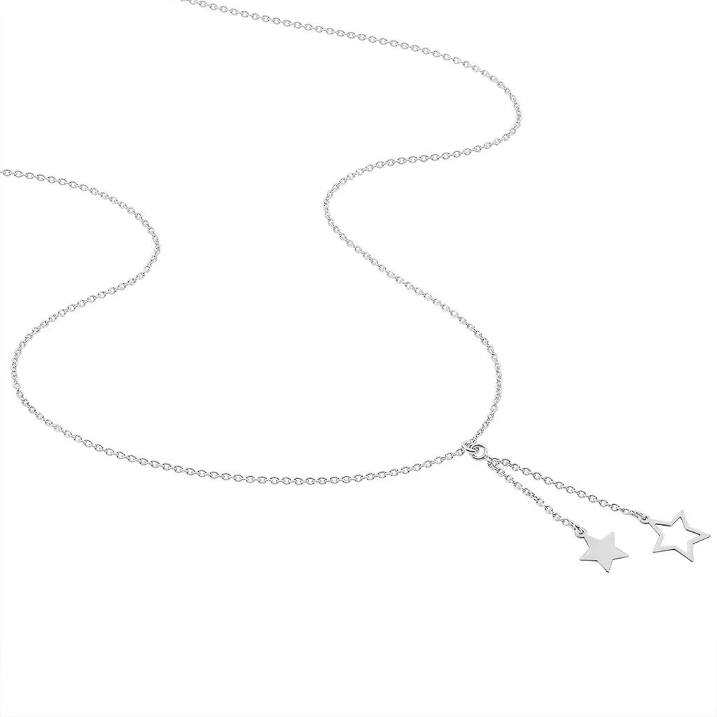 Collier Argent Blanc 925/1000 Forme Cravate Double Etoiles Maille Forcat 45cm