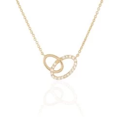 Collier Plaque Or Double Ovales Dont Un Pave Oxydes De Zirconium 44cm