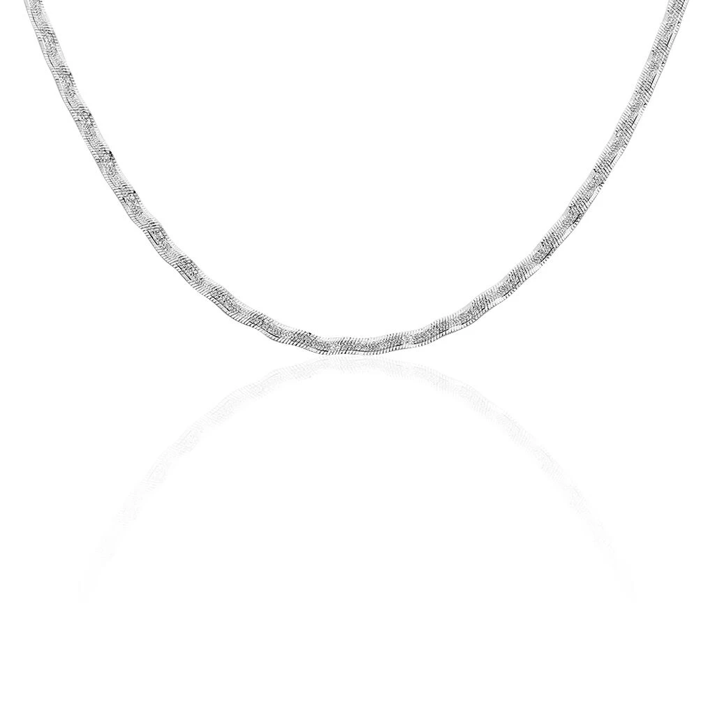 Collier Argent Blanc 925/1000 Maille Heringbone Ondulee Diamantee Largeur 3.3mm 42cm