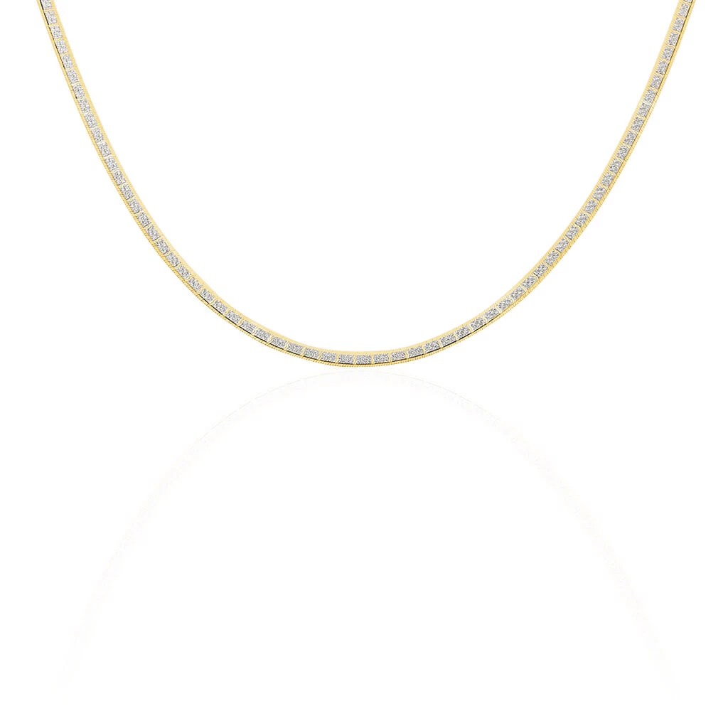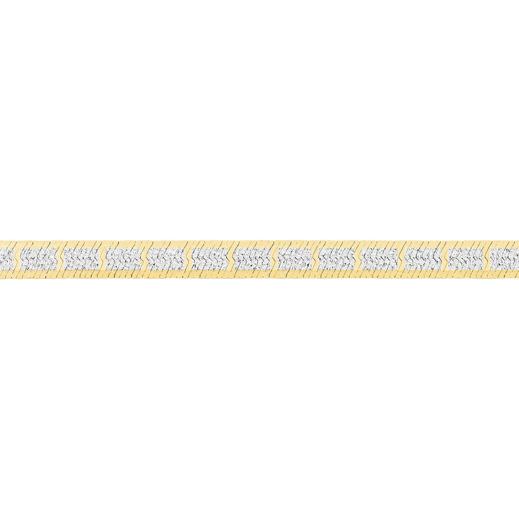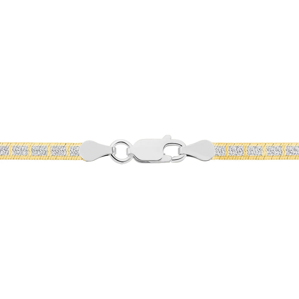 Collier Argent Jaune 925/1000 Maille Heringbone Motifs Carres Diamantes Largeur 3mm 42cm