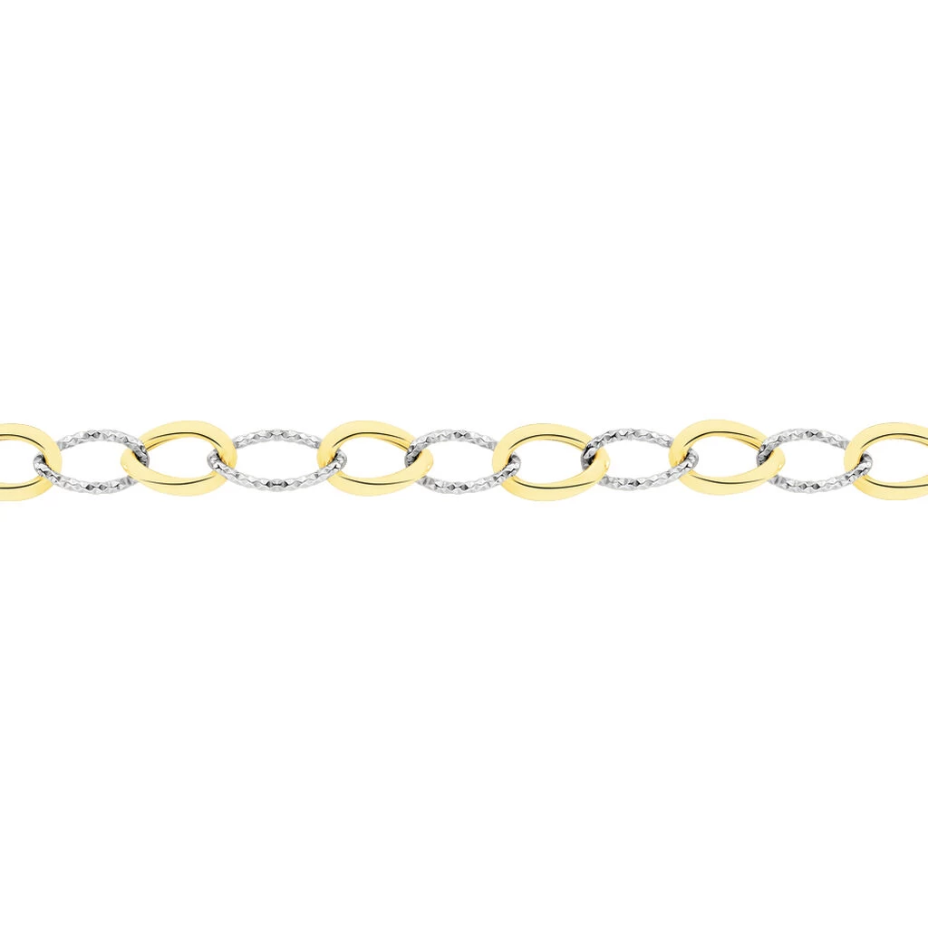 Collier Or Bicolore 375/1000 Maille Alternée Lisse Et Godronne Largeur 7.7mm 45cm