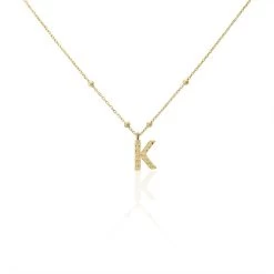Collier Plaque Or Jaune Lettre K Martelee Et Petites Boules Chaine Maille Forcat Longueur 45cm