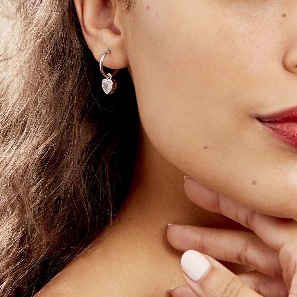 Creoles Argent Blanc 925/1000 Pampilles Cœurs Serti Clos Oxydes De Zirconium Diametre 13mm