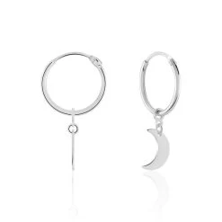 Creoles Argent Blanc 925/1000 Pampilles Motifs Lunes Diametre 12mm