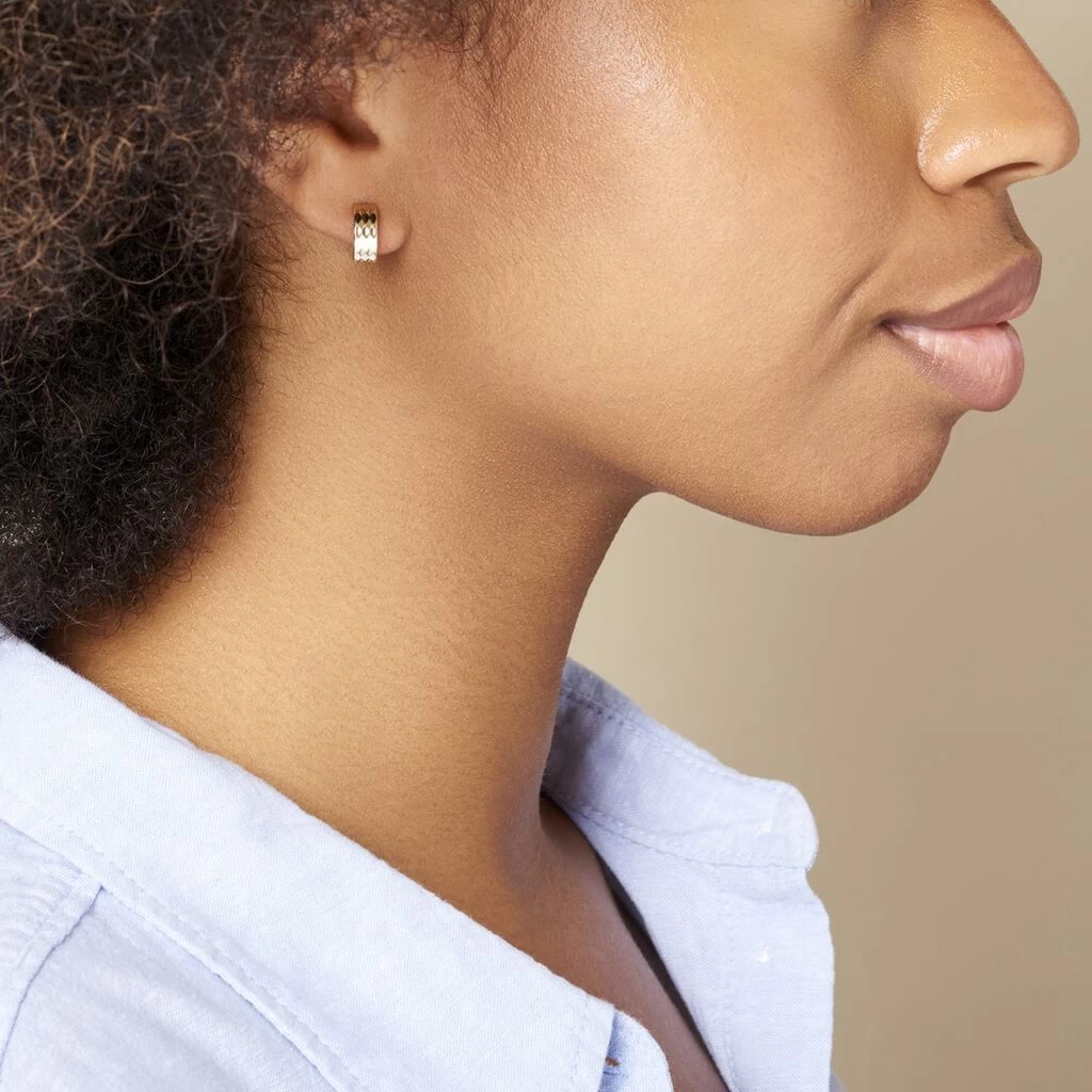 Créoles Or Jaune 375/1000 Demi Cercle Diamantées Losanges Diamètre 11.2mm
