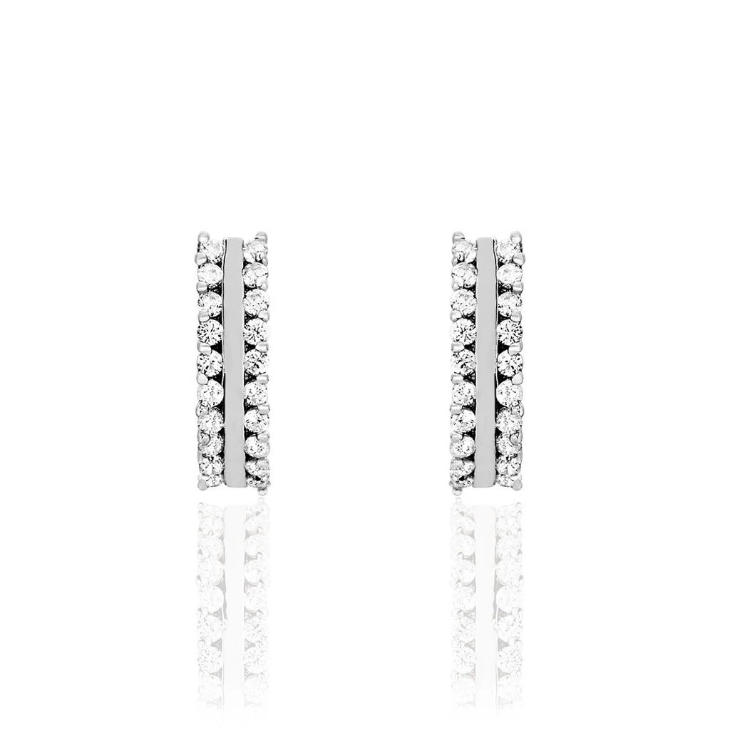 Boucles D’oreilles Demi Creoles Argent Blanc 925/1000 Double Rang Avec Oxydes De Zirconium