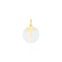 Pendentif Or Jaune 375/1000 Motif Croix Nacre Blanc 1ct